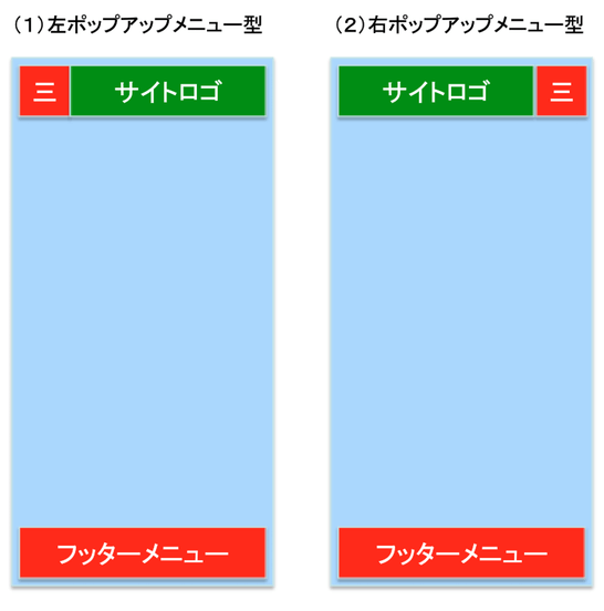 こうした中で最善の策として出来ることがグローバルメニューは下図のように画面の左上か、右上にポップアップメニューを設置してそこをタップ(画面を押す)すると表示されるようにすることです。