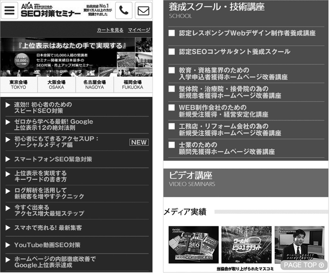 次の図は筆者が運営するセミナー案内サイトのモバイル対応サイトのトップページです。