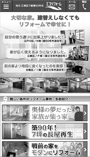 まず、モバイル対応サイトをデザインする時に最初に気になるのがトップページをどのようにデザインするかです。