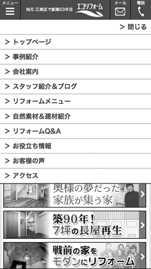 アプリ的なシンプルなデザインで操作性の高いナビゲーション・メニューをモバイル対応サイトに実装することによりアプリから自社モバイル対応サイトにシームレスなユーザー体験を提供することが出来ます。そしてそれは訪問後に期待される成約率にポジティブな影響を与えることが期待できます。