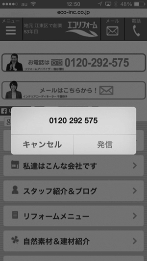 PCと違い、スマートフォンでサイトを見る場合、思い立ったらすぐに電話発信が出来るように配慮をする必要があります。