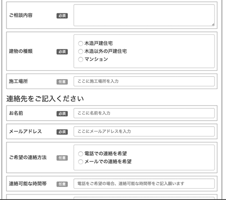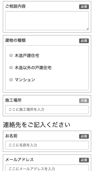 モバイル対応はWebページだけに必要なのではなく、お問い合わせボタン、資料請求ボタン、申し込みボタンを押した時に表示される入力フォームにも必要です。