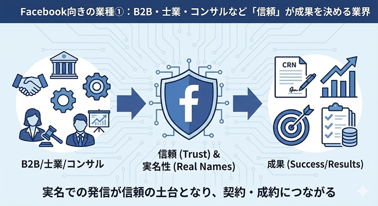 Facebook向きの業種①:B2B・士業・コンサルなど「信頼」が成果を決める業界