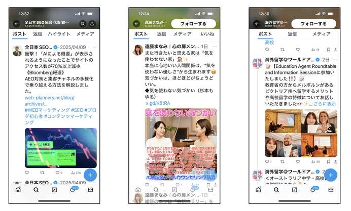 リアルタイム性の高い話題(交通機関のトラブル、業界の速報、会場レポートなど)はXが最も強い土俵です。拡散は自動的には起きません。リポストされる前提で「他者に共有したくなる端的な価値」を置くことが肝心です。たとえばイベント現地の要点3つ、行政発表のポイント2つ+原典リンク、トレンドに関する数字と出典、など自分の言葉で「まとめ」を添えると、リポストと保存が増えます。
