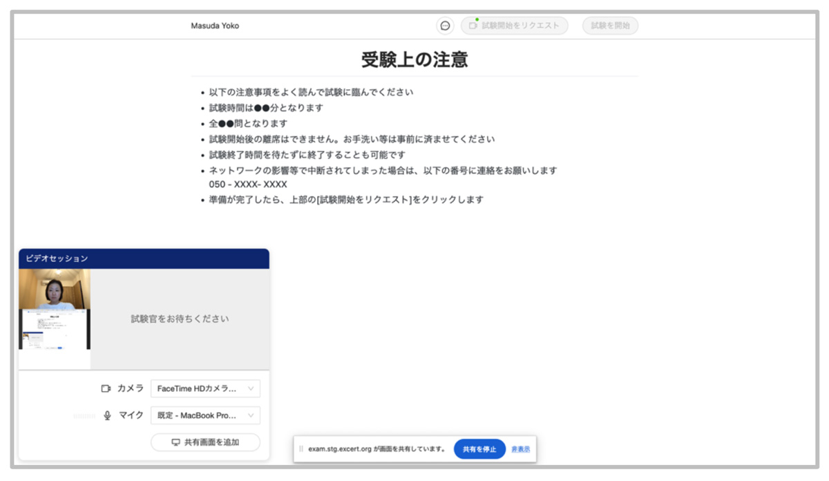 ・ 受験中にカメラ角度や音声、パソコン画面の状態を試験監督官が音声で確認する場合があります。 また受付とは別の試験監督官からお声がけして確認する場合があります。これらの確認に費やした時間は戻りません。