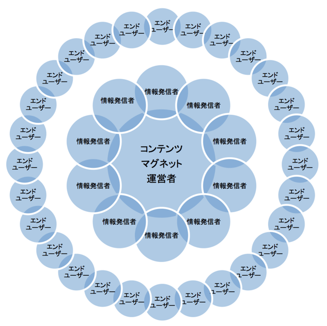 これらのサービスは情報発信者がエンドユーザーに向けて情報を発信するためのインフラを作り、情報発信がスムーズに行えるような管理をすることにより急速にコンテンツを増やすことに成功しています。