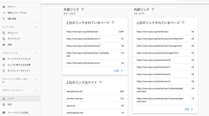最も正確に自社サイトの被リンク元を調べる方法は、サーチコンソール内にある「リンク」という項目を見る事です。