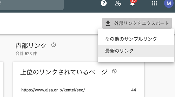 そこに表示される画面右上の「外部リンクをエクスポート」という項目をクリックするとエクセルでこれまで自社サイト内のページにリンクをしているWebページの一覧が表示されます。そこにはすでにリンクをしていない古い被リンク元も表示されますがかなり正確に被リンク元を見ることが出来ます。