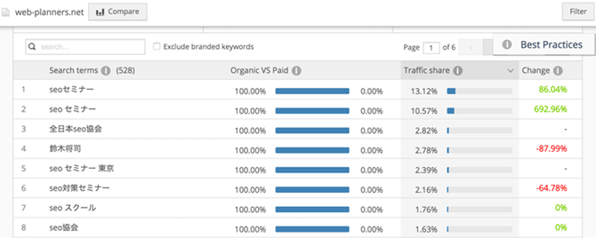 この競合調査ツールを使うことにより検索エンジンで上位表示しているサイトのアクセス状況をかなり正確に知ることが出来ます。それにより自社サイトよりも上位表示しているサイトのアクセス状況を知り、その数値と自社サイトの違いを比較し、上位表示しているサイトの数値との差を知ることが出来ます。