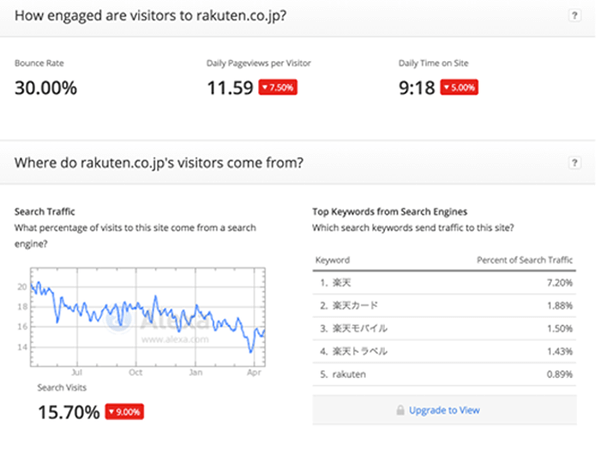シミラーウェブよりも古くから競合調査ツールを提供しているのがアマゾン社の子会社が提供するアレクサ(alexa)です。