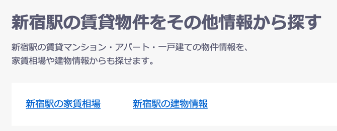 次の図は「新宿駅の家賃相場」のページを「新宿駅 家賃相場」で上位表示をするために「新宿駅の家賃相場」というフレーズでリンクを張っている例です。