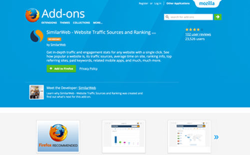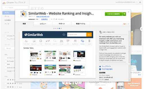 目標を設定する上で実際に上位表示しているサイトの流入元を調べるにはシミラーウェブ無料版のプラグインをクロームブラウザか、ファイヤーフォックスブラウザにインストールします。
