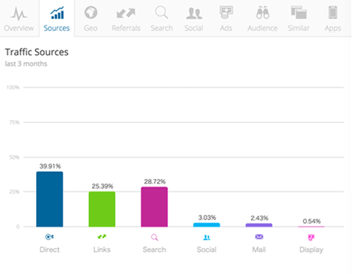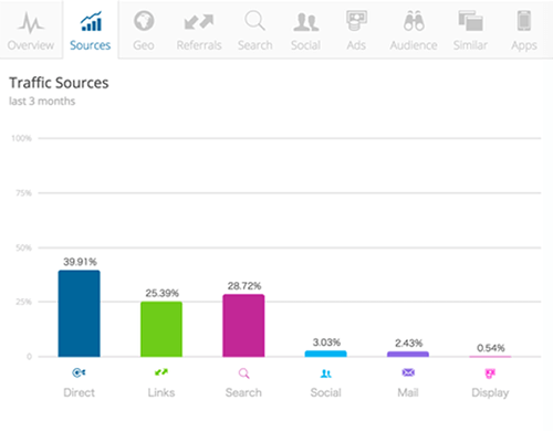 自社サイトのダイレクトの比率が低い場合は、言うまでもなくPR努力と商品・サービスの改善が求められます。そして、ダイレクトの比率が高い競合他社のサイトを競合分析ツールを使い発見してそのサイトがどのような施策を行っているのか、サイトの様々なページを注意深く観察して、自社サイトに取り入れされそうなものは取り入れるようにするべきです。