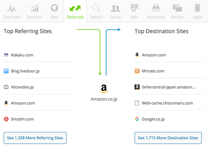 競合他社の流入元データを見た時にソーシャルの数値が高い場合はその企業がソーシャルメディアをしっかりと活用しているという証拠になります。その場合、シミラーウェブの「Social」というタブをクリックして具体的にどのソーシャルメディアを活用しているかの内訳を見ましょう。そして実際に彼らのソーシャルメディアページを観察してどのようなコンテンツをソーシャルメディアで発信しているかを知り自社で出来ることはないか研究してください。そこからその業界で有効なソーシャルメディア活用法が見つかることがあります。