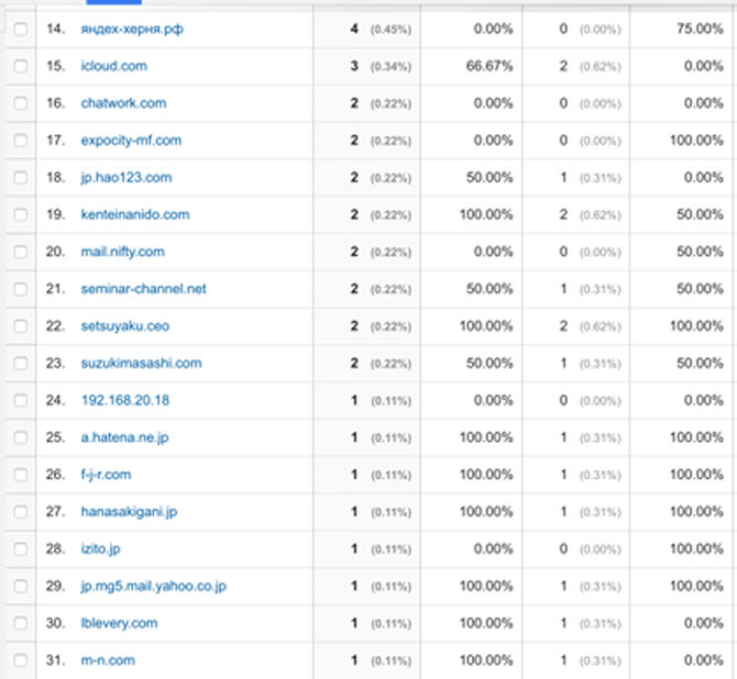 何故なら、全く流入の無い流入元は何も手を打っていないから流入が無いことがほとんどだからです。そうした場合は、少しでもその流入元からの流入を増やすための対策をすればそれだけサイトへのトラフィックが増えます。
