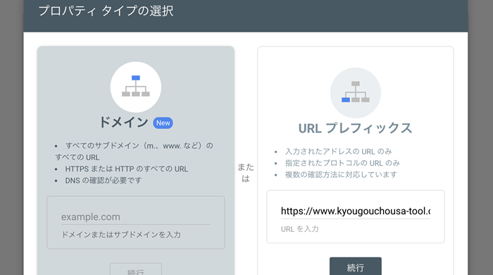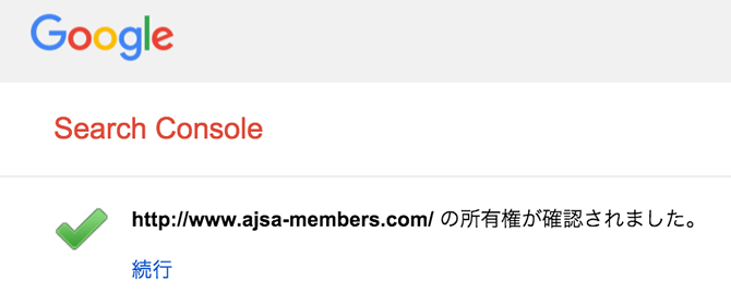 (5)続行というリンクをクリックするとサーチコンソールに入れます。