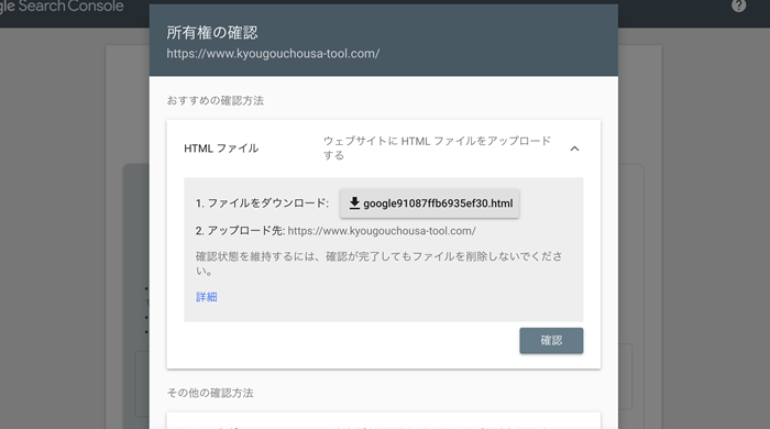 サーチコンソールに自社サイトを登録するにはいくつか方法がありますが最もシンプルな方法は、Googleが指定したHTMLファイルをダウンロードして、そのHTMLファイルを自社サイトのサーバーにFTPソフトを使いアップロードし本人認証をする方法があります。