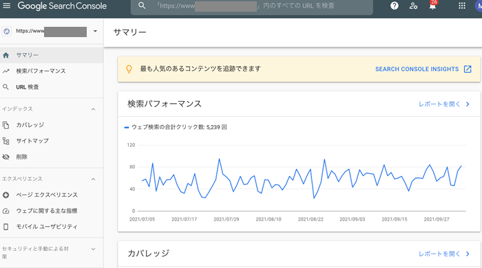 本人認証が済むとサーチコンソールを利用することが出来るようになります。